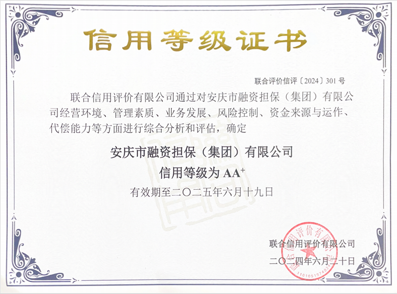 近日,在省擔(dān)保協(xié)會(huì)組織的全省融資擔(dān)保機(jī)構(gòu)信用評(píng)級(jí)中,經(jīng)聯(lián)合信用評(píng)價(jià)有限公司評(píng)定,市擔(dān)保公司連續(xù)兩年獲得“AA+”信用評(píng)級(jí),在省內(nèi)147家融資擔(dān)保機(jī)構(gòu)中位居第一梯隊(duì),充分反映了權(quán)威評(píng)估機(jī)構(gòu)對(duì)公司綜合實(shí)力、資產(chǎn)質(zhì)量、戰(zhàn)略規(guī)劃和發(fā)展前景的高度認(rèn)可。